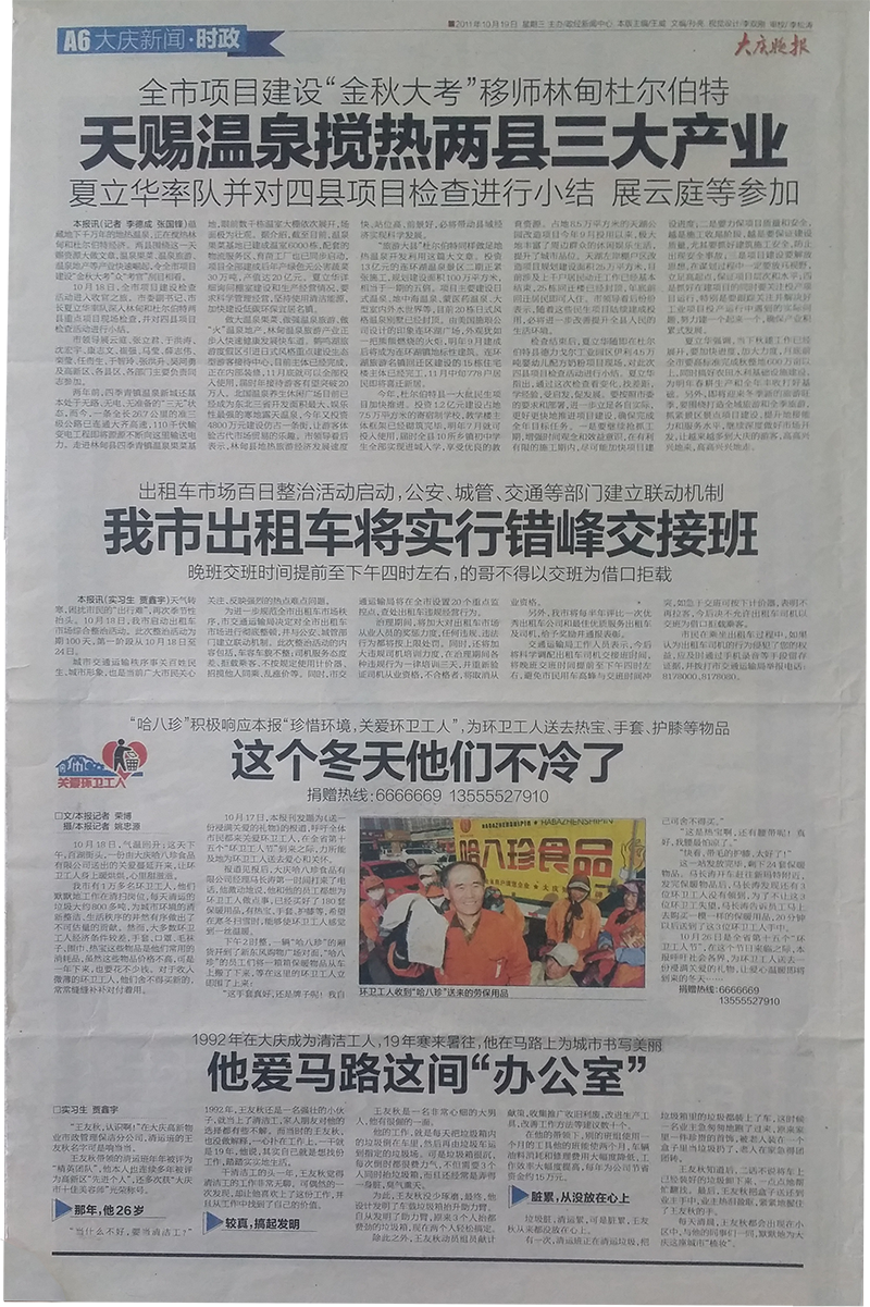 “哈八珍”積極響應(yīng)本報“珍惜環(huán)境,關(guān)愛環(huán)衛(wèi)工人”,為環(huán)衛(wèi)工人送去熱寶、手套、護(hù)膝等物品
